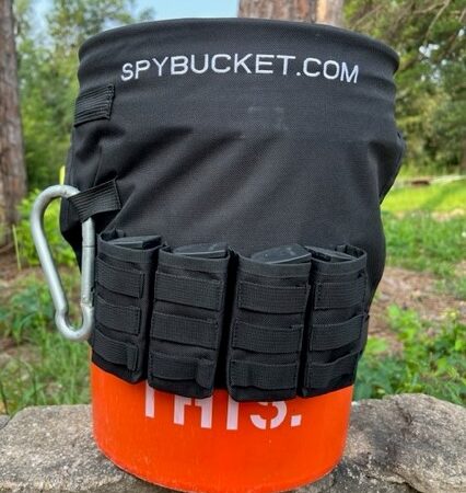 The Spy Bucket cover stores all of your essentials for a day in the field or a trip to the gun range!
